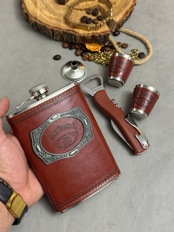 بطری جیبی جکدنیلز مدل چرم