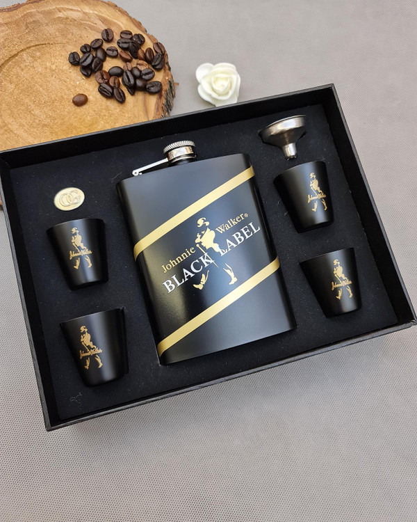 ست هیپفلاسک جانی واکر یه ست جذاب و شیک با لوگوی جانی واکر بلک لیبل میتونه یه شیک و لاکچری به حساب بیاد