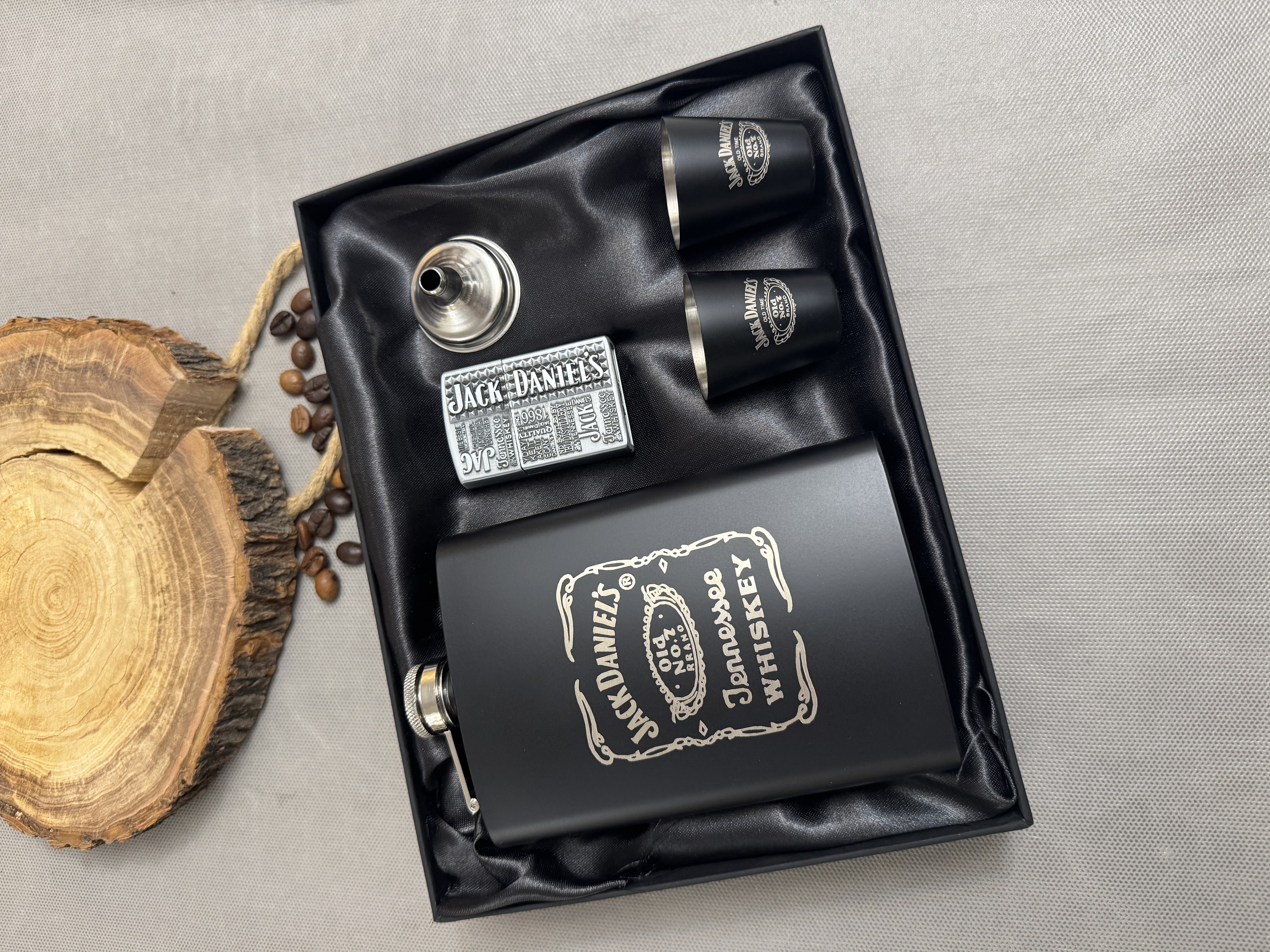 ست هیپفلاسک ۲۴۰ سیسی همراه فندک گازی قیف و شات