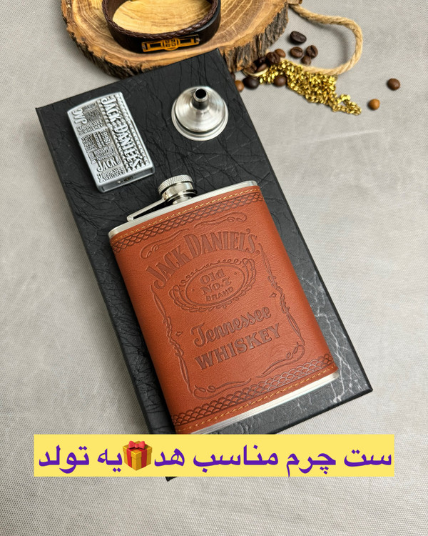 ست قمقمه کتابی فندکدار ترکیب بطری و فندک خیلی جذابه مخصوصا که جکدنیلز باشه جنس بدنه بطری چرم مات بسیار جذاب ، استیل ضدزنگ بدون تغییر مزه و بو