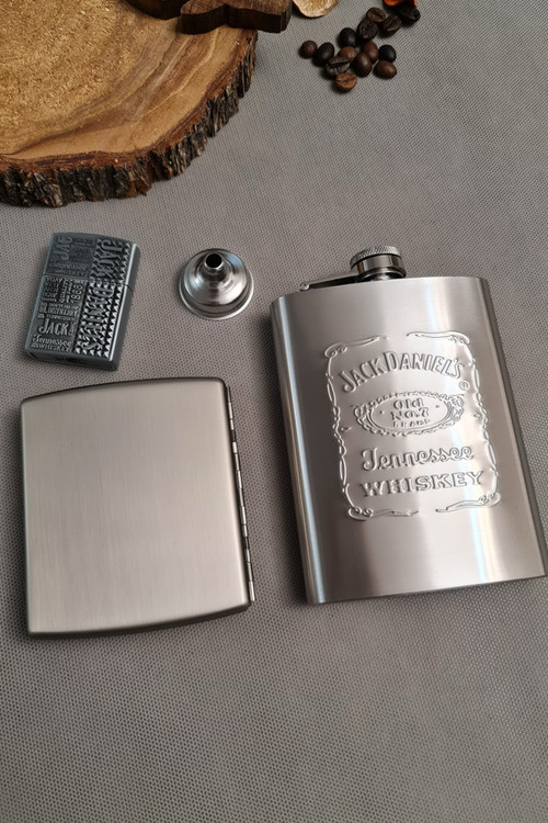 ست هیپفلاسک استیل همراه جاسیگاری و فندک و قیف