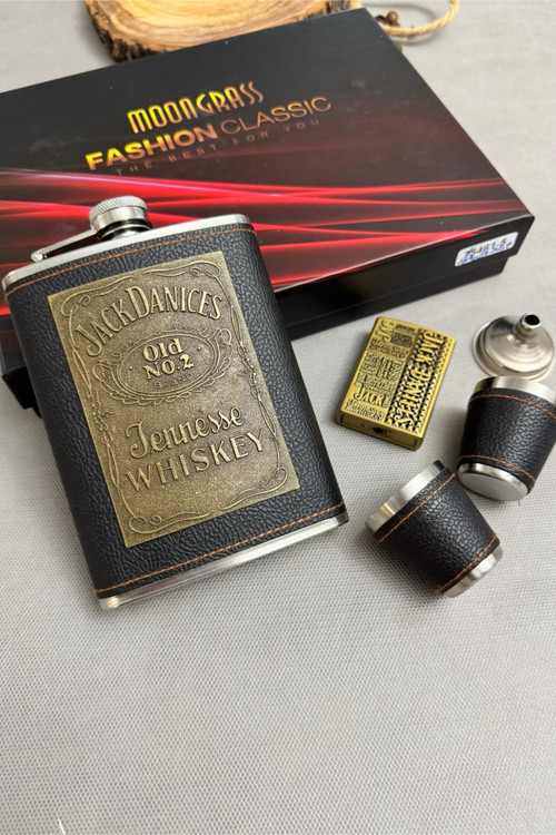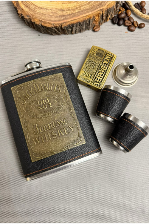 فلاسک فندکدار مدل جکدنیلز چرم پلاکدار