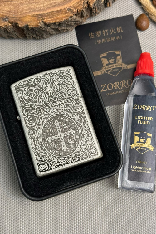 خرید فندک بنزینی زورو کنستانتین با طراحی ۳۶۰ درجه و بنزینی یدکی همراه هاردباکس و کاتالوگ مناسب هدیه